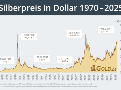 Hier einige interessante Charts zu Gold und Silber, tagesaktuelle Kurse und Charts finden Sie unter www.gold.de