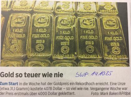 Gold hat im Jahresverlauf 2025 neue historische Höchststände erreicht.